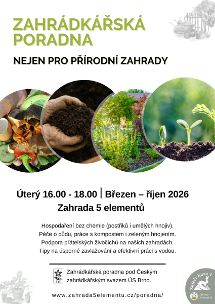 Zřízení stálé zahrádkářské poradny se zaměřením na přírodní zahrady bylo schváleno 8.10.2025 představenstvem Územního sdružení ČZS Brno - město na základě doporučení odborné a pěstitelské komise Českého zahrádkářského svazu.