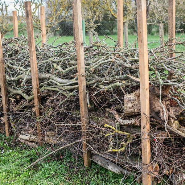 Hromadu větví někde na kraji zahrady ocení mnoho živočichů. Kromě vytvoření hadníku můžete nabídnout domov třeba pro ježka. Ten je užitečným pomocníkem, který se živí škůdci, jako jsou slimáci, hmyz a jeho larvy, a pomáhá tak udržovat zahradu bez chemikálií a škůdců. Pokud někde potřebujete pohledovou clonu a nemáte místo na živý plot, využijte ostříhané větve na "živý" mrtvý plot.